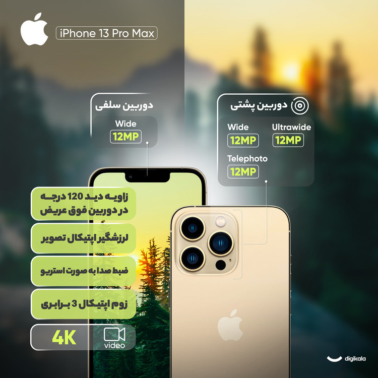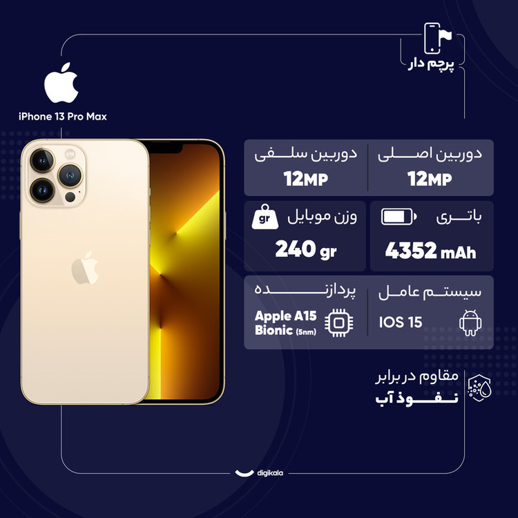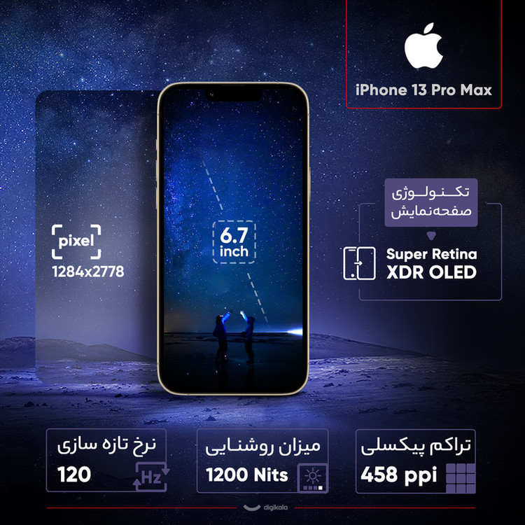 مدل: iPhone 13 Pro Max ZDA - ریفربیش پارت نامبر F (نات اکتیو - ایرادات کالا توسط کمپانی اپل برطرف شده است)